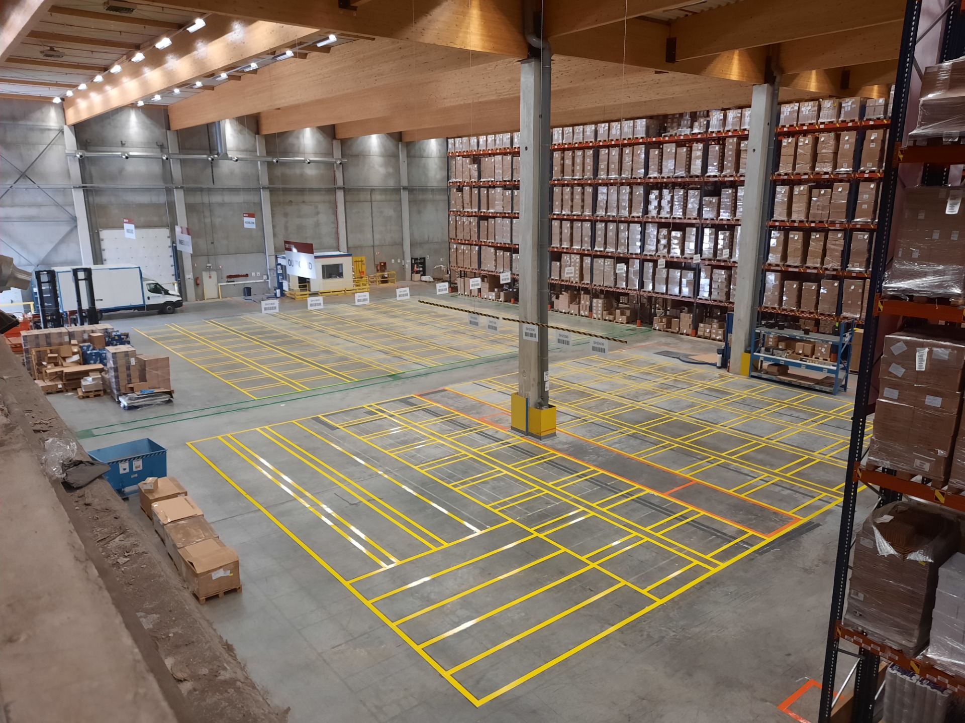 Zones de stockage et logistique – marquage de zones palettes, rayonnages, zones d'attente.